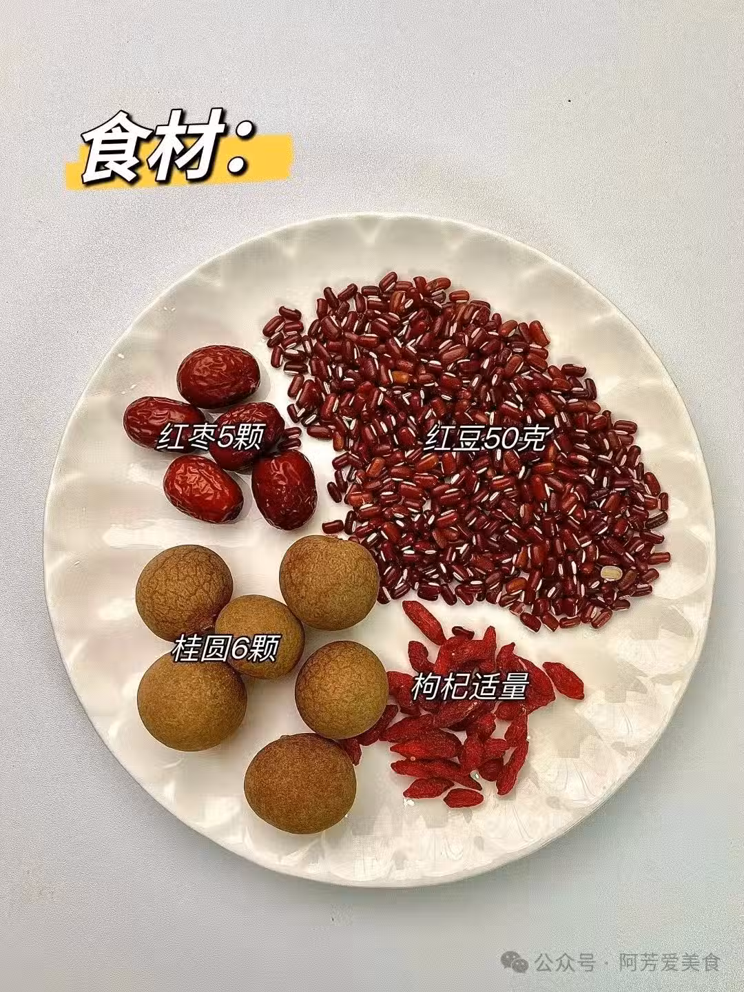 紅豆和桂圓的搭配,桂圓QQ彈彈的,口感很好,很有嚼勁,再加入枸杞調香,還有紅棗增加甜味,喜歡喝甜的寶子們,一定要喝這款!