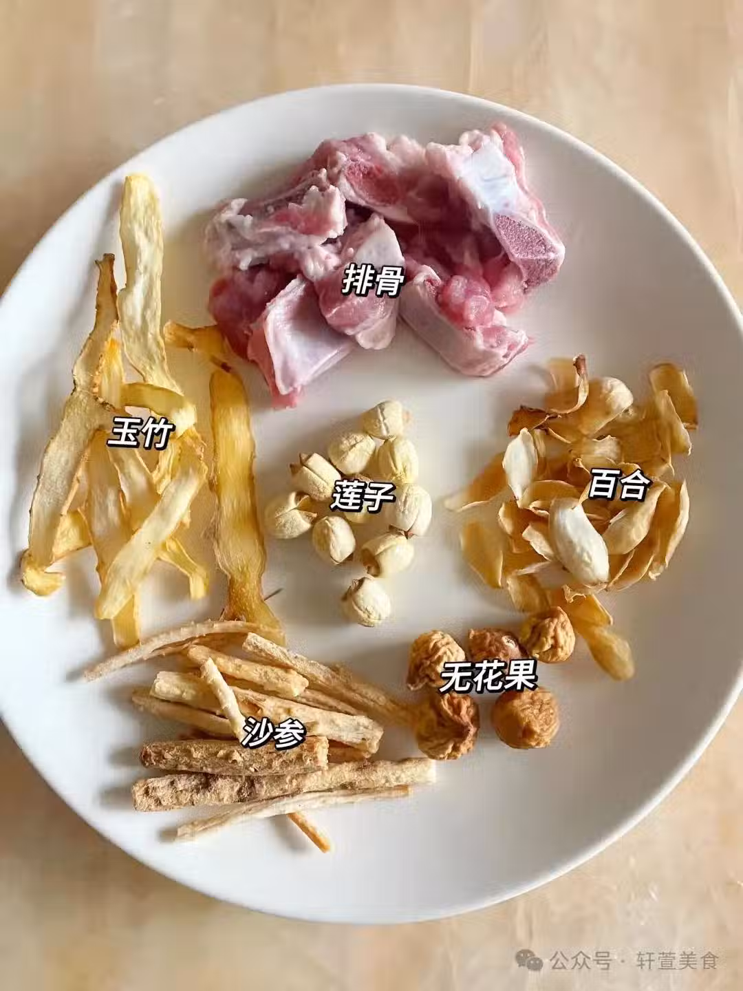 排骨焯水,所有食材倒入燉鍋加3-4人份清水燉2小時,出鍋前加適量鹽調味~