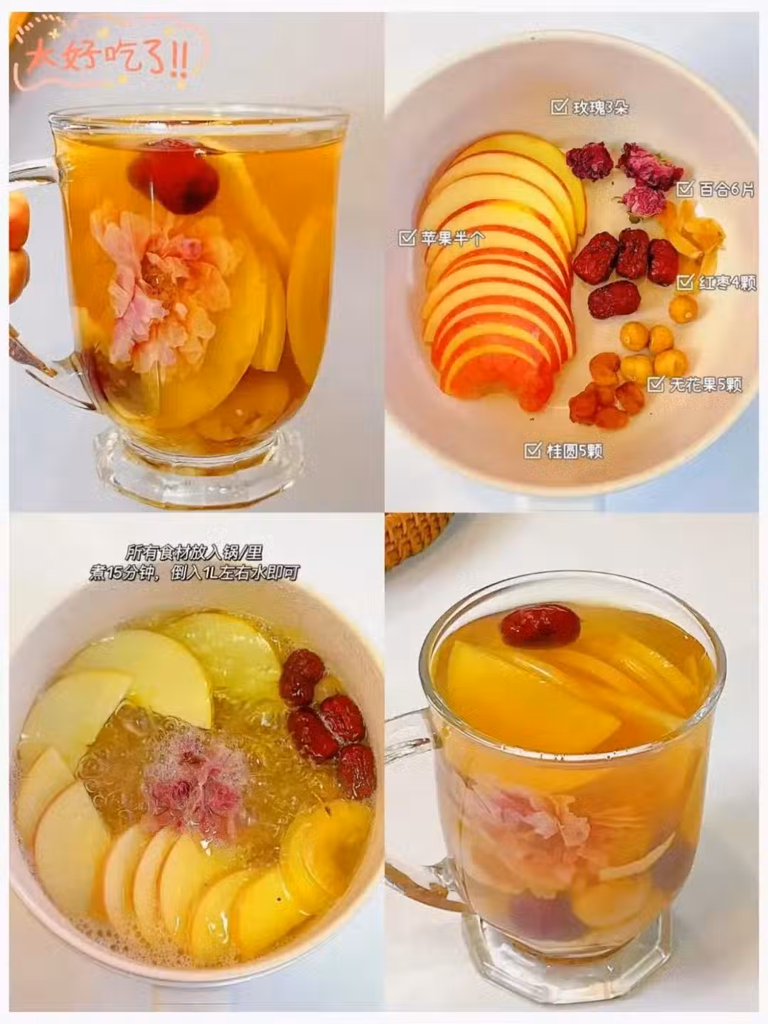 💥功效: 黃芪補氣血,百合潤肺,搭配蘋果、紅棗等,助力調養脾胃,補氣血,讓身體更有活力~