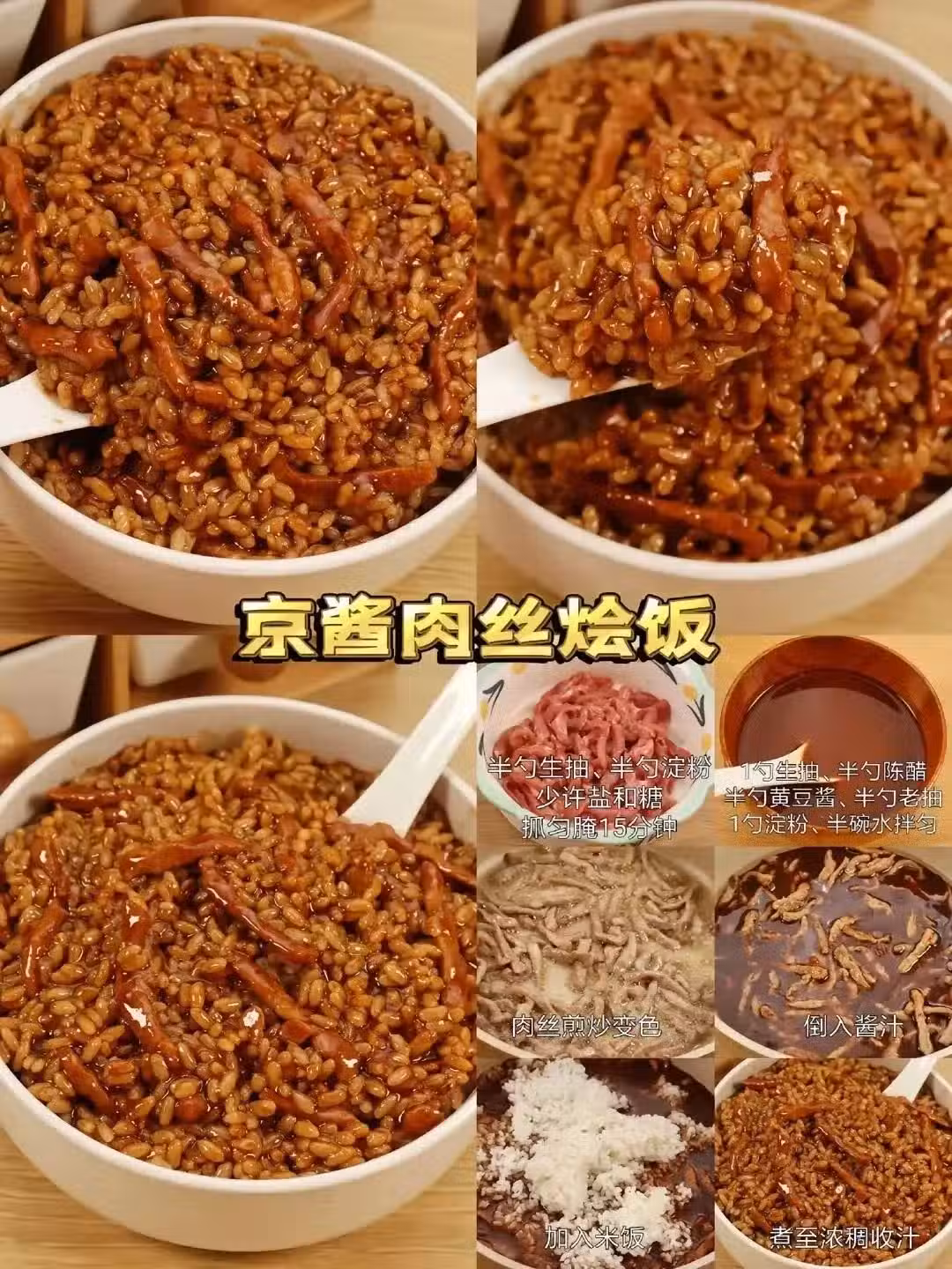 故宮牆根兒外賣小哥的秘密菜單。裡脊肉切絲甜麵醬炒香,蓋在米飯上撒把黃瓜絲,用勺挖著吃才是對醬汁的最高敬意。