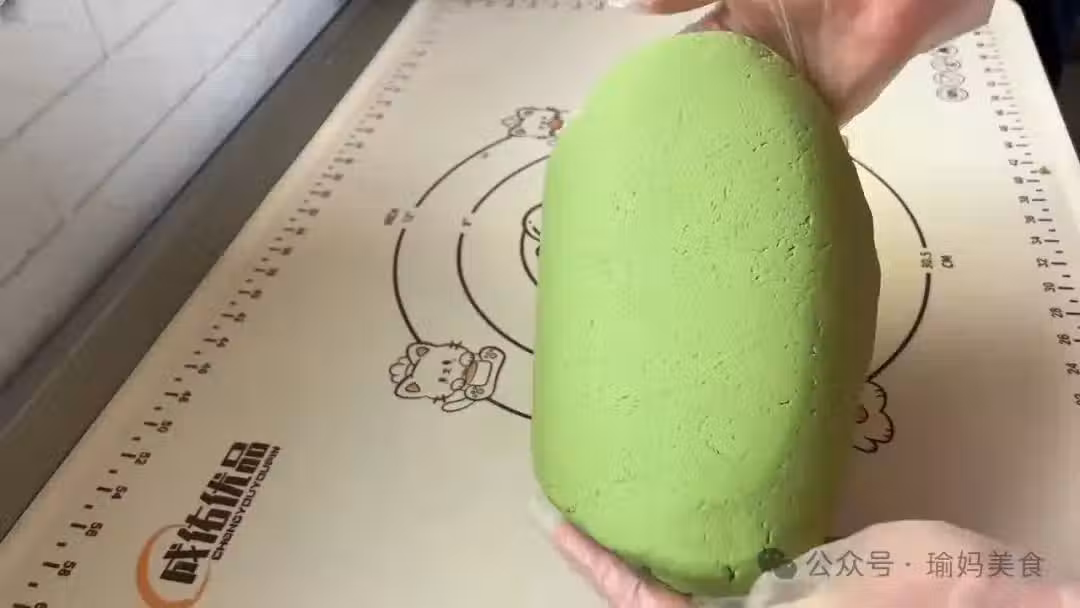 5.揉勻之後把它搓成長條。然後分成約50克左右的小面劑,取一個面劑,先整理光滑。在中間按一個窩。包入蛋黃餡,用虎口慢慢的收攏,把收口處捏緊搓圓,最後搓高一點,一個生坯就完成了