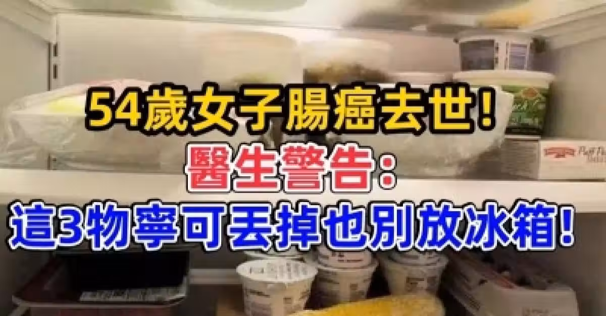 54歲女子腸癌去世, 醫生警告:這3物寧可丟掉也別放冰箱!