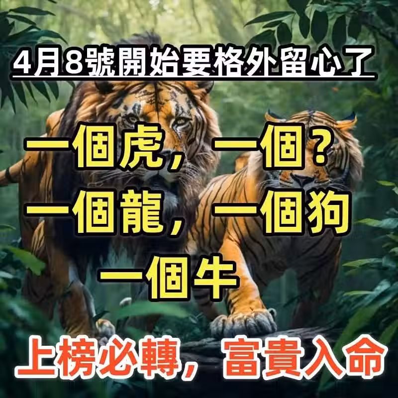 4月8號開始要格外留心了,一個虎,一個?一個龍,一個狗,一個牛必轉!