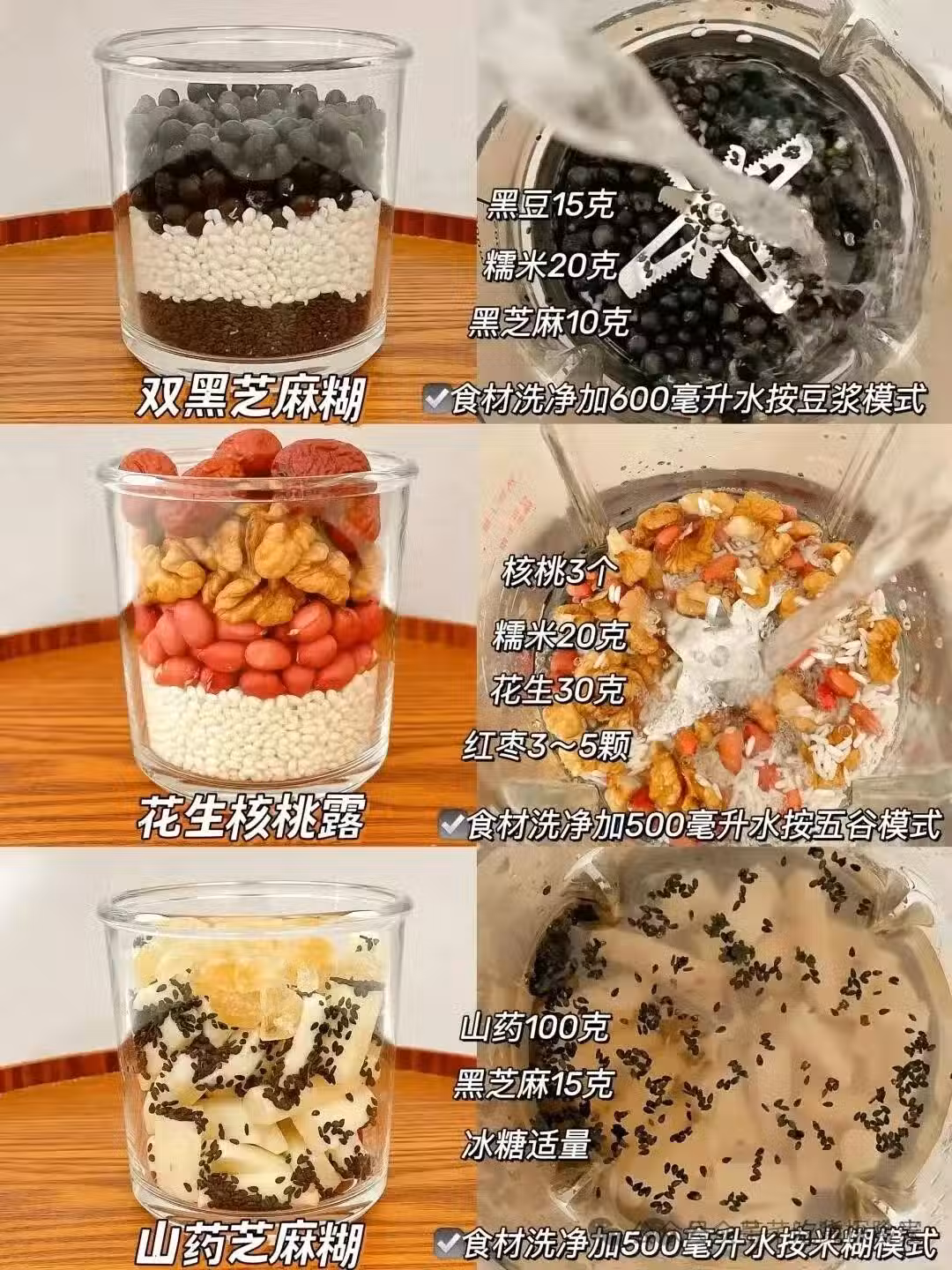 準備食材:黑豆,黑芝麻, 糯米,水。