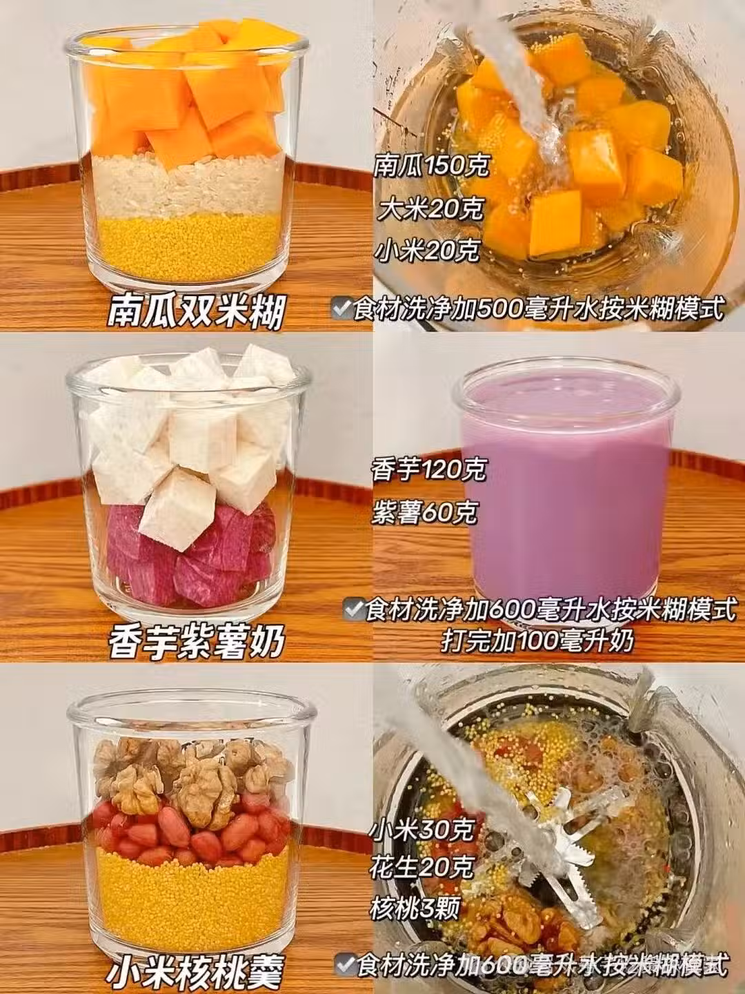 準備食材:香芋,紫薯,牛奶,水。牛奶打完以後再添加。