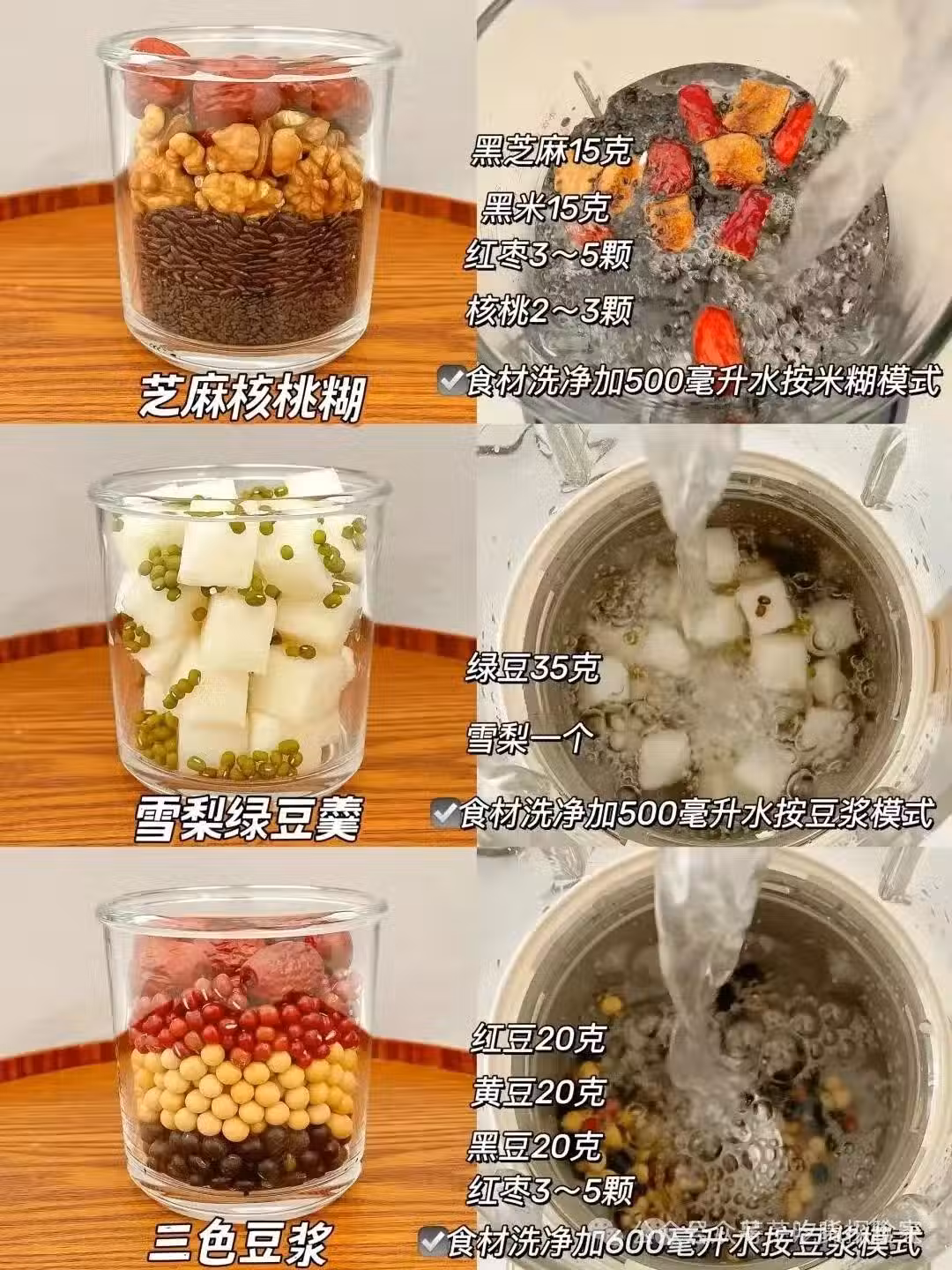 準備食材:綠豆,黃豆,黑豆,紅棗,水。