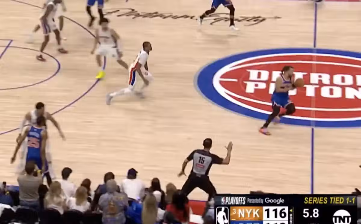 雙方系列賽出現了兩次重大誤判,一個是尼克斯球員布倫森回場,裁判竟然無視,當時是在活塞隊的主場,尼克斯最後一個球給布倫森的時候,布倫森接球時疑似回場違例,最終導致了活塞輸球。