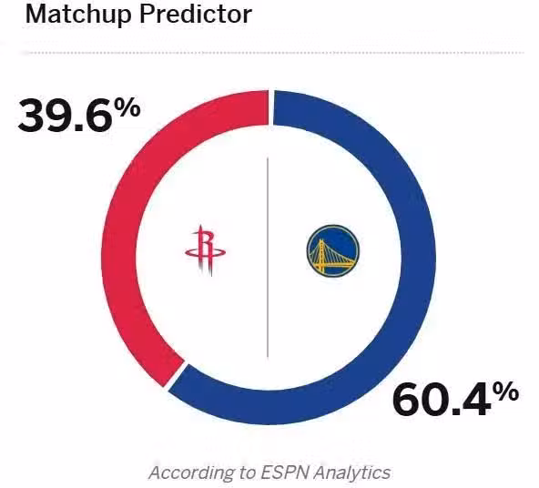 自打巴特勒加盟勇士之後,勇士一路高歌,如今季後賽首輪勇士已經3比2領先火箭,晉級僅是一步之遙!今天,ESPN更新G6比賽勝率,勇士為60.4%仍然被看好,火箭為39.6%。