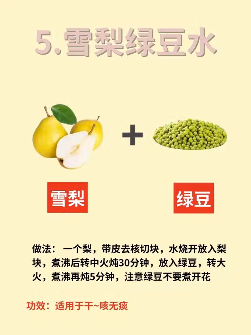 5.雪梨綠豆水:適用乾咳無痰