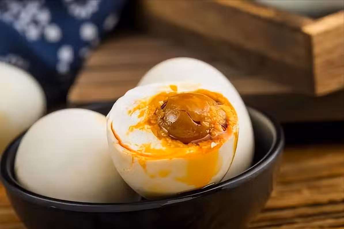 我們可以選擇自己腌制的鹹鴨蛋,也可以買點高郵的鹹鴨蛋,至於鹹鴨蛋的吃法,如袁子才所說,帶殼切開,是一種,那是席間待客的辦法。平常食用,一般都是敲破「空頭」用筷子挖著吃。筷子頭一紮下去,吱——紅油就冒出來了。這樣就可以品嘗了。