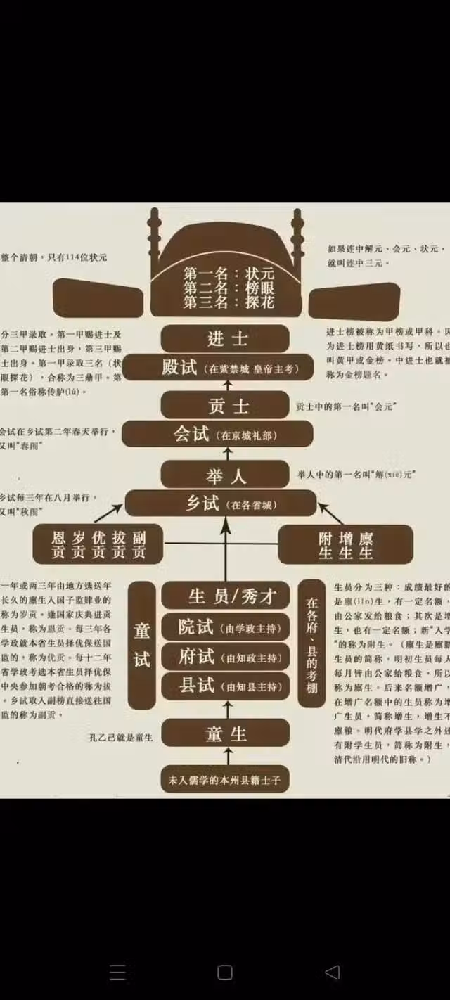 每個朝代考試的內容也大有不同,唐朝初期主要考經義和策論,從武則天時代起,詩歌逐漸成為主流,唐玄宗時達到順峰,有唐一代詩賦都是重要內容。宋朝初期也很重視詩賦,在王安石的建議下,科舉逐漸取消了詩賦,後來雖曾恢復,但詩賦已經不是科舉最主要的方面,策論才是重頭戲,特別是殿試,明清時代越來越重視經義,逐漸發展出八股文,嚴格規定文音的形式和內容,導致科舉內容越來越虛化,最終和時代脫節。從科舉的內容可以看出,各個時代的進士氣質也有很大區別,比如,唐朝進士善寫詩,宋朝進士喜議論,明清進士則被八股文累得夠哈,純粹是應付考試。