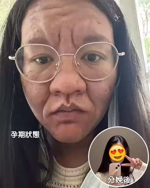 視訊的主人公,一位女子在孕期經歷了顏值的巨大變化。