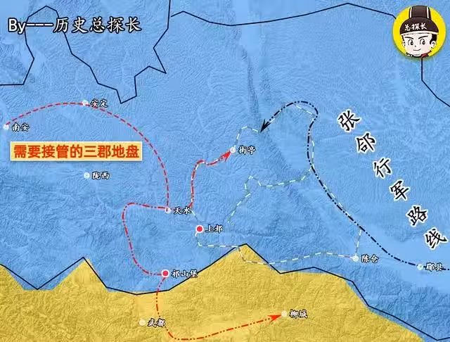 所以,北伐前期的豐碩戰果想要消化,或者說諸葛亮的蜀軍想要真正接收剛剛響應的曹魏邊緣三郡之地,必須阻止張郃急行軍突襲後方。