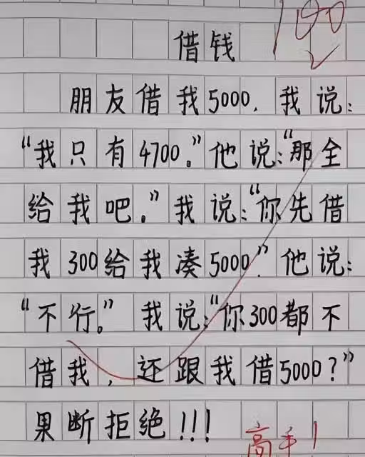 小學生100分作文《借錢》爆紅:困擾大人的「世紀難題」,被7歲娃「一語道破」!