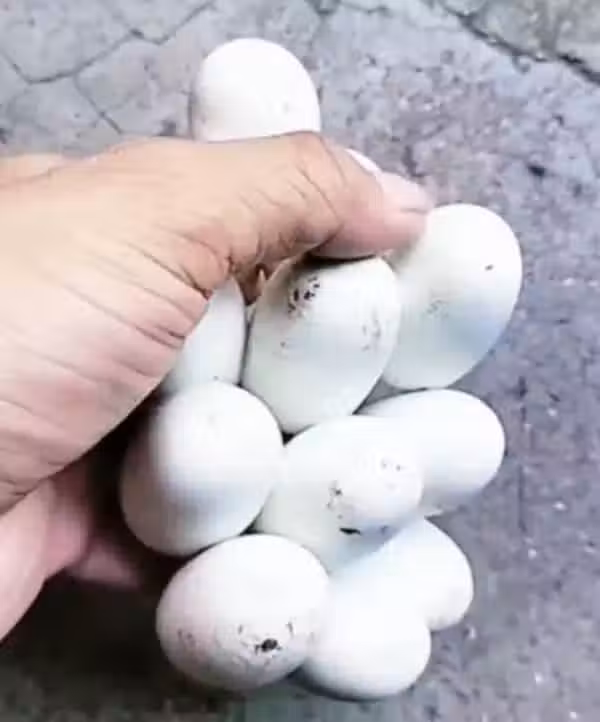 根據《大象新聞》報導,廣東省韶關市一名男子誤撿一串黏在一起的蛋,想說晚餐有雞蛋可以吃了。