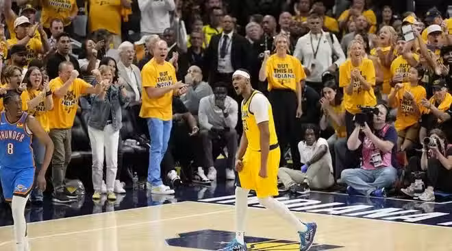 ③、托平,替補席奇兵,值得卡萊爾重用!加盟步行者後,托平的戰術定位從尼克斯時期的「空間型內線」升級為「多維度進攻發起者」。在卡萊爾的體系中,他不僅是底角三分威脅點(本賽季季後賽底角三分命中率41.2%),更頻繁參與擋拆外彈、無球空切及低位單打。總決賽的G1戰,托平9中6,得到17分,成為替補席的奇兵,今天的G4戰,托平在第三節的兩個3分澆滅了雷霆追分的勢頭。全場比賽托平17分7籃板,末節卡萊爾應該讓托平替換特納,提升球隊的進攻空間!