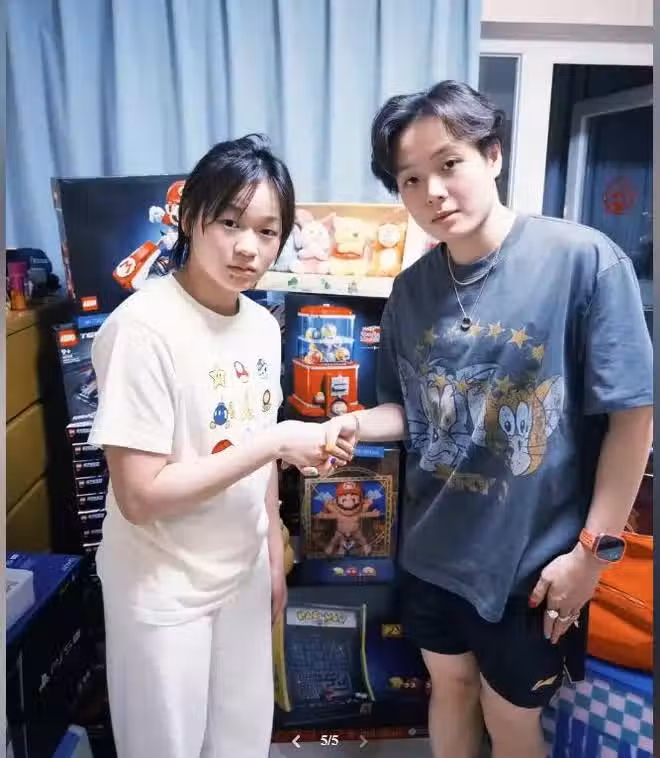 第一張照片就是全紅嬋最喜歡的毛絨玩偶,她一下子就買下了五六個,後面也是和自己的各個朋友和隊友在「玩具禮物牆」前拍照,最後又帶著自己的玩偶坐上了汽車不知道要去往何方。