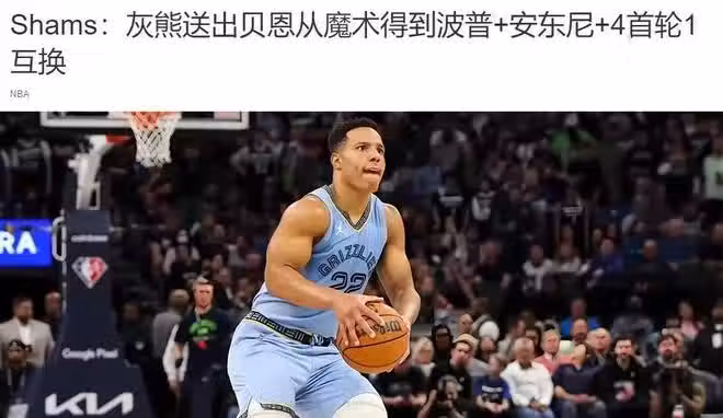 灰熊送出貝恩得到25年首輪16號簽、太陽26年首輪和魔術28、30年首輪4個無保護首輪以及魔術29年首輪互換和波普、安東尼·科爾。