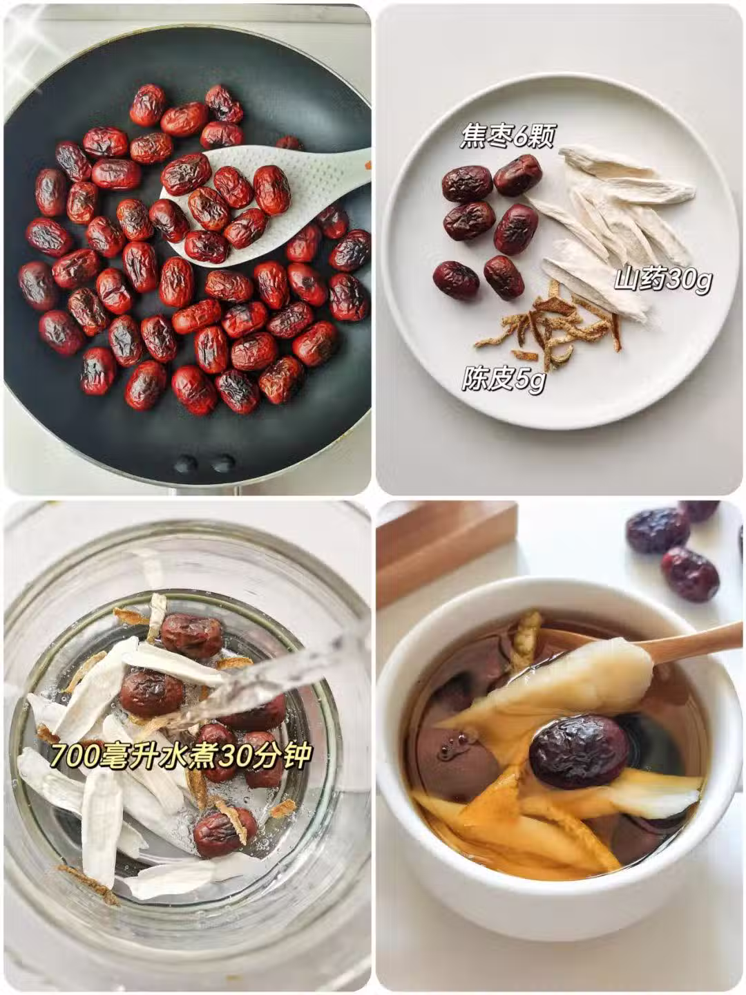 焦棗6顆 ➕ 山藥30g ➕ 陳皮5g