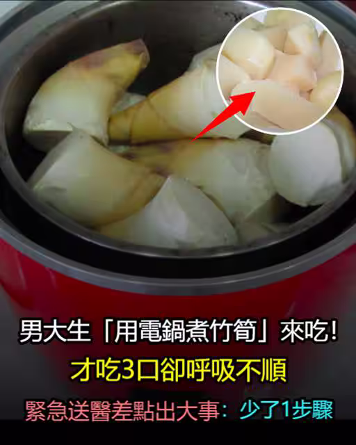 男大生「用電鍋煮竹筍」來吃!才吃3口卻呼吸不順,緊急送醫差點出大事:少了1步驟