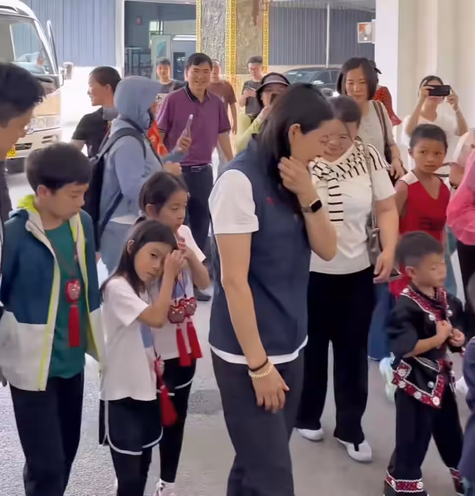 郭晶晶一家五口在貴州,俯身握手一點沒架子,衣服logo顯愛國情懷