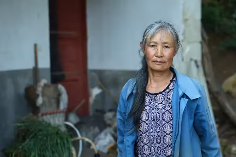 兒子的葬禮過後,蘭玉芬的頭髮像被霜打了,一夜白了大半,總盯著牆上兒子的遺像發獃。兒子走後,家裡全靠兒媳操持,蘭玉芬有骨質增生的老毛病,膝蓋腫得像發麵饅頭,幹不了重活。兒媳的辛苦,蘭玉芬都看在眼裡。兒媳除了忙活自家地里的活,回來還要給蘭玉芬煎藥、哄思思吃飯,有空就往鎮上跑著打零工。蘭玉芬摸著兒媳粗糙的手,那上面全是裂口,有的還結著血痂,她轉過身偷偷抹淚,恨自己這把老骨頭不中用。圖為蘭玉芬。