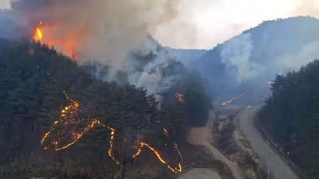 因火勢兇猛,韓國政府星期六(3月22日)宣布相關地方發生「災難事態」,南部15個村莊的200多名居民被令撤離。