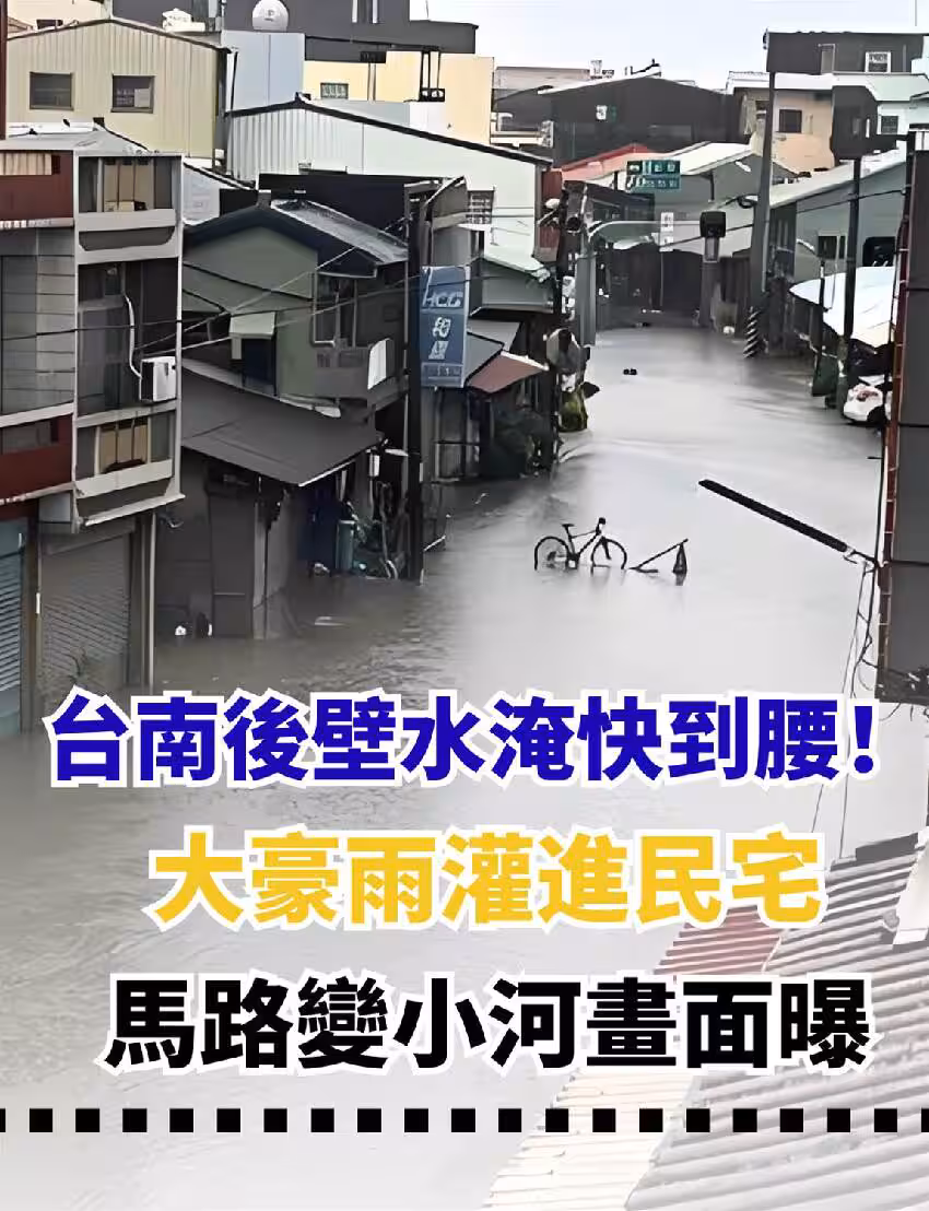 台南後壁水淹快到腰!大豪雨灌進民宅、汽車動彈不得,馬路變小河畫面曝!