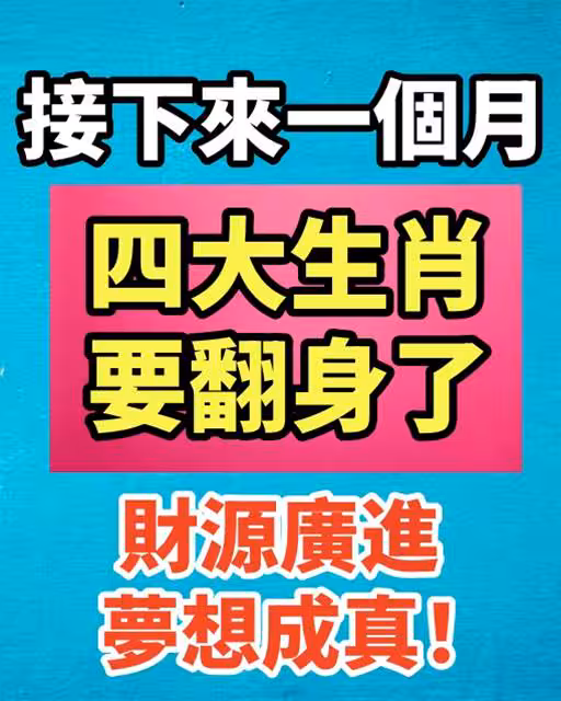 接下來一個月,四大生肖要翻身了,財源廣進,夢想成真!