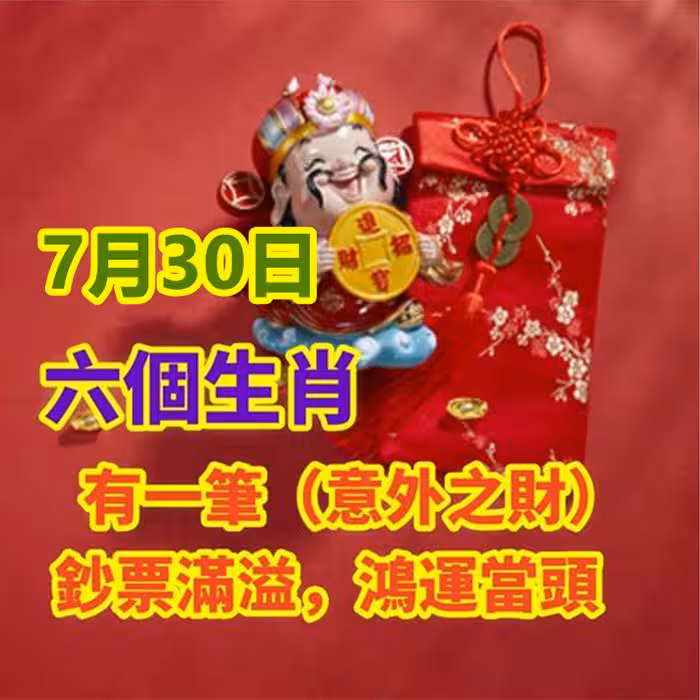 7月30日:六生肖有一筆意外之財鈔票滿溢,鴻運當頭