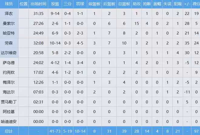 上賽季效力新疆隊的勞森,投籃14中10,無比高效轟下全場最高的24分外加10板,這哥們於24-25賽季的CBA場均能得到16.4分10板4.3助1.5斷,三項命中率52.8%、37.2%和84%。