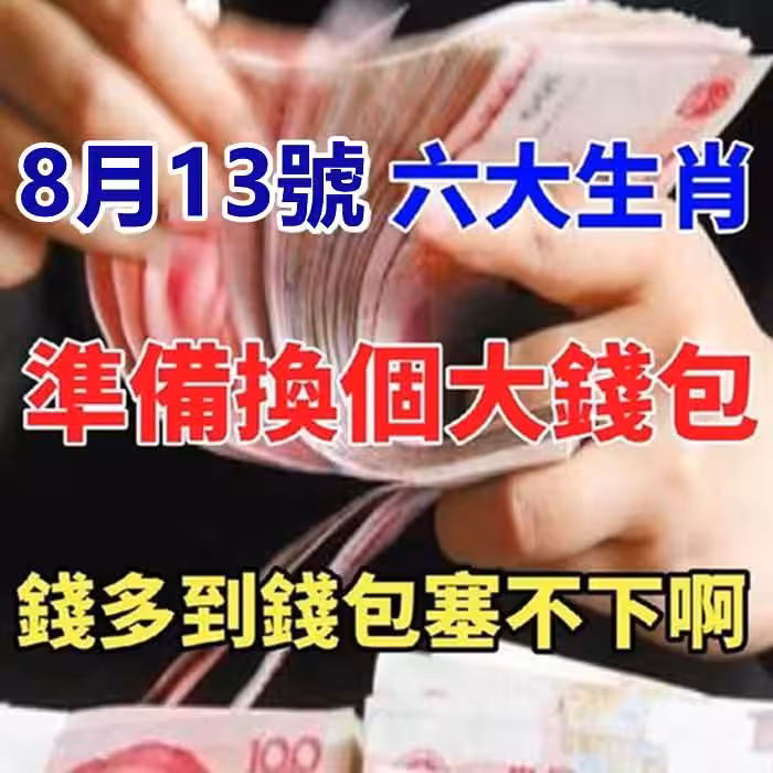 8月13號:六大生肖準備換個大荷包,錢多到錢包塞不下啊.