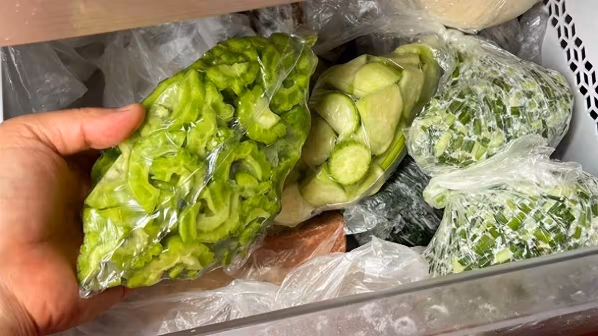 苦瓜的吃法有很多,我們可以把冷凍後的苦瓜自然解凍後,拿來炒雞蛋吃,味道和新鮮的一樣。這樣冬天我們也能吃到自己種的新鮮蔬菜,太香了。如果家裡還有吃不完的冬瓜、絲瓜,用同樣的方法保存,切記焯水時間不要高於10秒,掌握好這個時間段使蔬菜更加翠綠、口感清脆爽口,和新鮮的一樣!