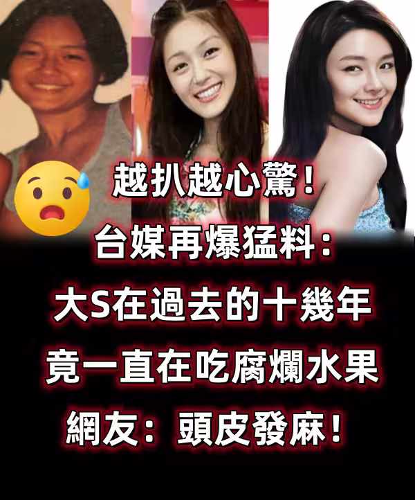 越扒越心驚!台媒再爆猛料:大S在過去的十幾年竟然一直在吃腐爛的水果,網友:頭皮發麻!
