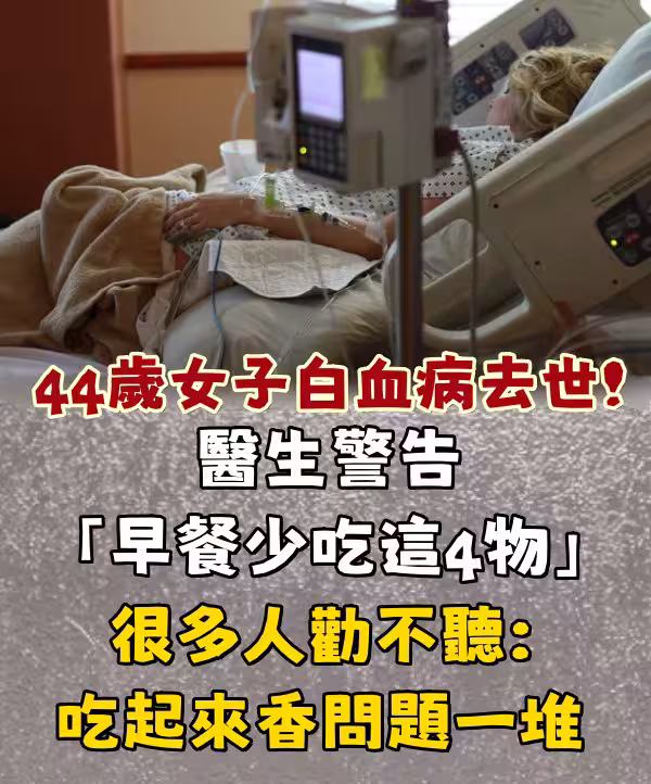 44歲女子白血病去世!醫生警告「早餐少吃這4物」很多人勸不聽:吃起來香問題一堆~