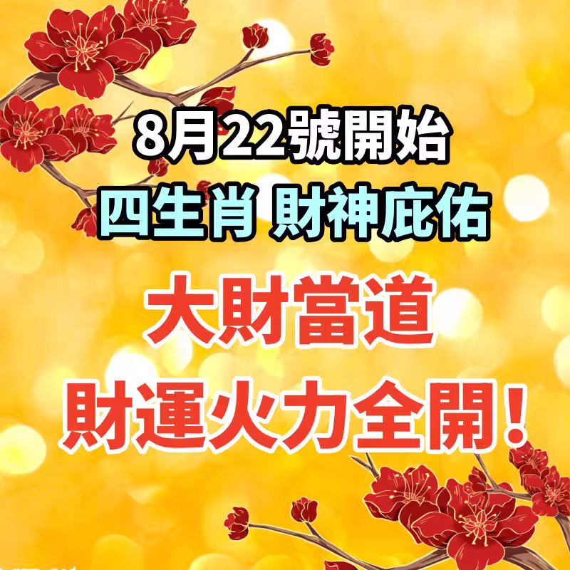 8月22號開始, 四生肖財神庇佑,大財當道,財運火力全開!