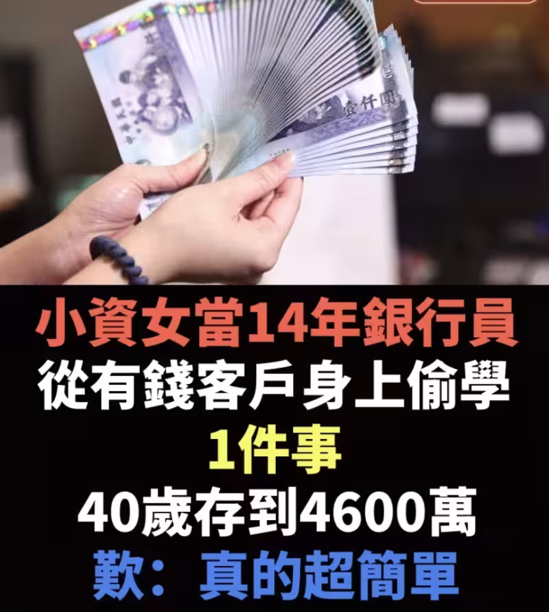 小資女當14年銀行員,從有錢客戶身上偷學1件事,40歲存到4600萬,嘆:真的超簡單!!