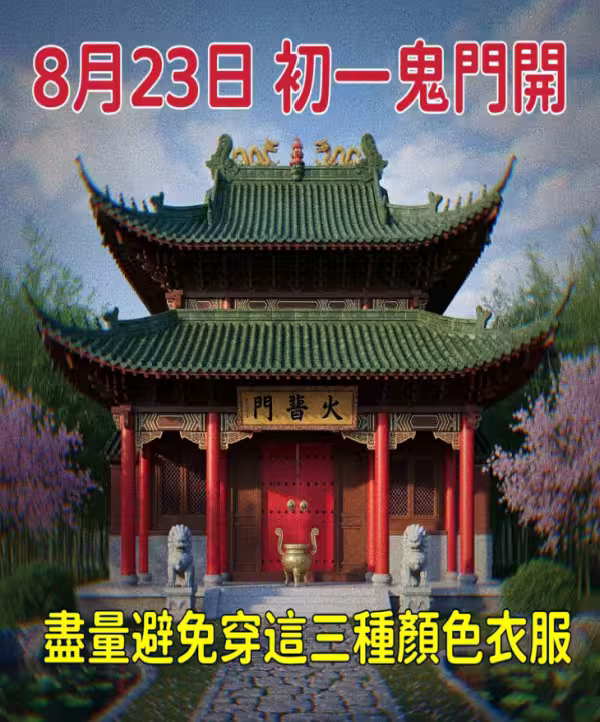 8/23號鬼門開 儘量避免穿三種顏色衣服 以免招惹不好的氣場 影響自身運勢!