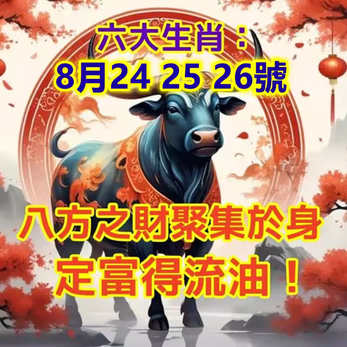 六大生肖:8月24 25 26號八方之財聚集於身,定富得流油!