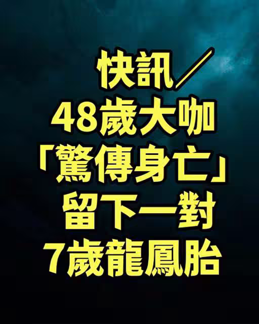 快訊/48歲大咖「驚傳身亡」留下一對7歲龍鳳胎