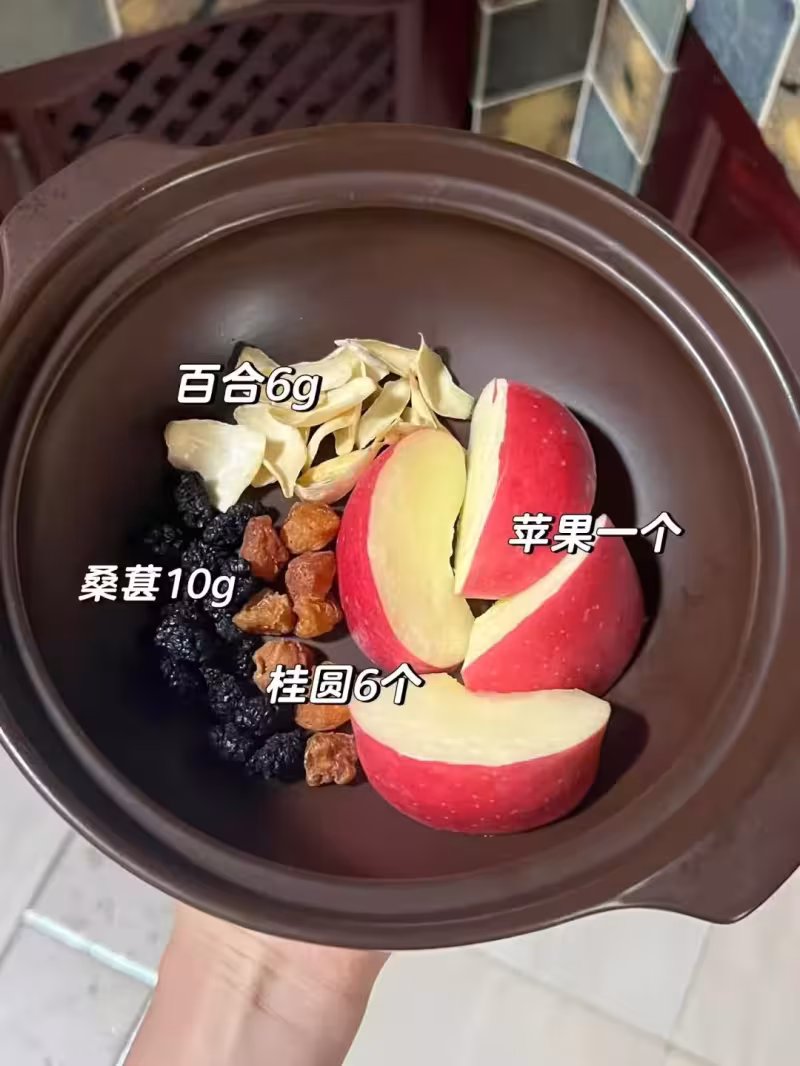 蘋果洗凈切塊,不用去皮。把所有材料放進清水裡,用中火煮30分鐘左右。煮到水色變深,蘋果軟透,味道融合。喝的時候溫熱適中,帶點果酸和甜香。