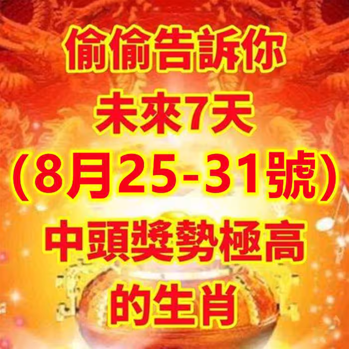 未來7天(8月25~31號)中頭獎勢極高的生肖