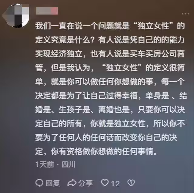 可問題是,真正的獨立女性不應該是自己決定自己的人生嗎?