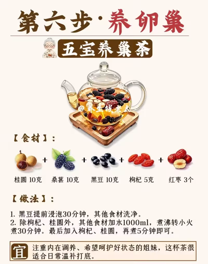 養生講順序,也別忘了日常堅持!先肝 → 健脾 → 祛濕 → 補氣血 → 補腎 → 養卵巢每一步做好了,養生效果才更好,狀態越來越在線!