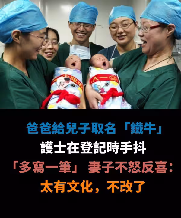 爸爸給兒子取名「鐵牛」 護士在登記時手抖「多寫一筆」 妻子不怒反喜:太有文化,不改了…