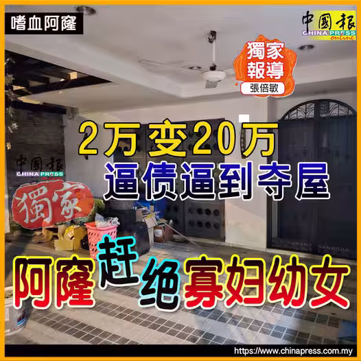 《中國報》獨家報導,嗜血阿窿被指欺辱寡婦幼女,不僅擅自暴漲債務利息、還奪房賣產,10年來毫無人性將一家四口逼入絕境。