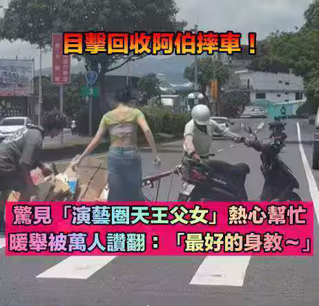 回收阿伯摔車!下秒驚見「演藝圈天王父女」出面幫忙 暖舉被萬人贊翻: 「最好的身教!」