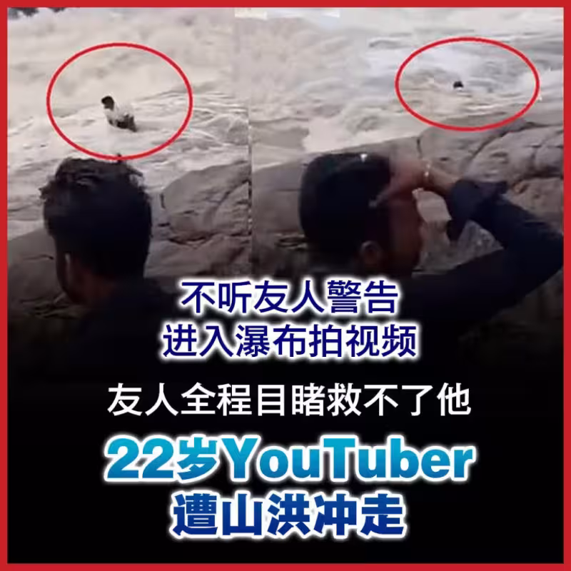 (新德里28日綜合電)印度奧里薩邦一名男子不聽友人警告,堅持進入瀑布區拍攝視頻,遭突然急瀉而下的山洪捲走,在場友人全程目擊卻無力施援,只能眼睜睜看著他消失在眼前,搜救行動至今已經展開了5天,仍未尋獲他的下落。