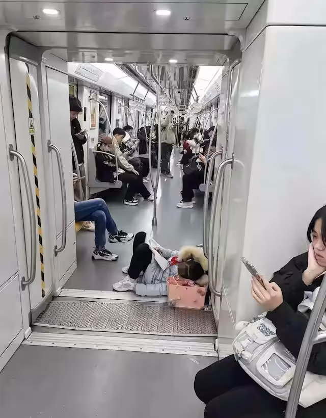 撐不住了!小女孩「直接在車廂地板」呼呼大睡 近看「手緊握1物品」網鼻酸:悲哀的社會