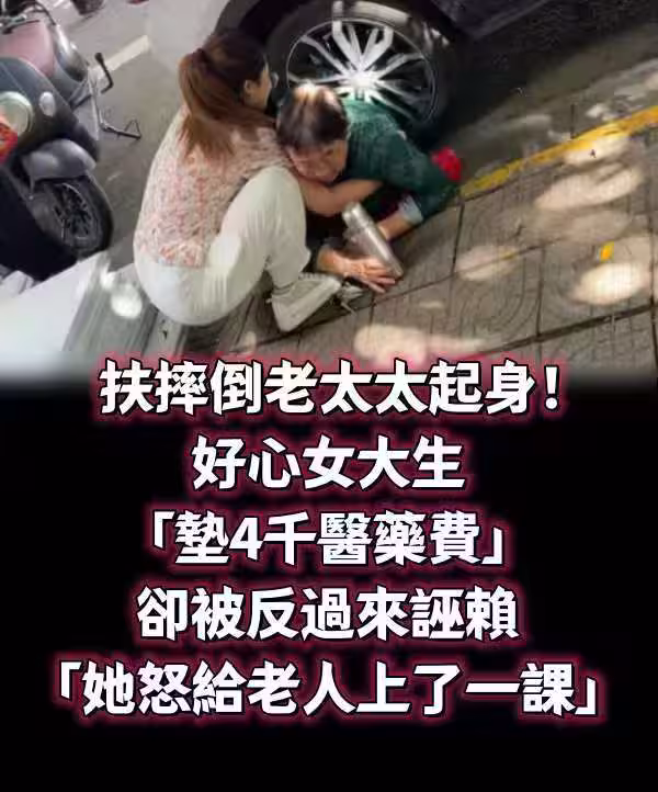 一位女大學生這天看到路邊有位老太太跌倒在地上,周遭卻沒有人願意伸出援手,她決定過去扶老人家一把。